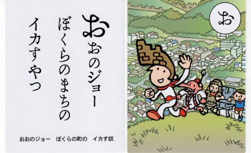 家族や友達と遊びながら、大野城市のことを学ぶことができるかるたです。大野ジョーのイラストが満載で、とてもかわいい絵札がついています。