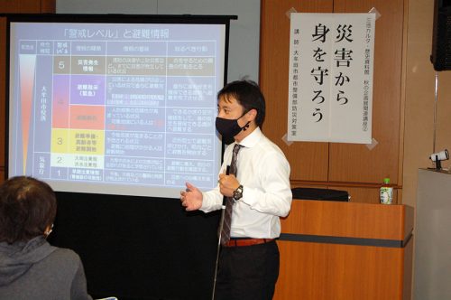 内容は令和2年7月豪雨の当日に行われた対応についてや、避難するときの判断基準や、「自分は大丈夫」と思ってしまう危険性など詳しく解説されました。