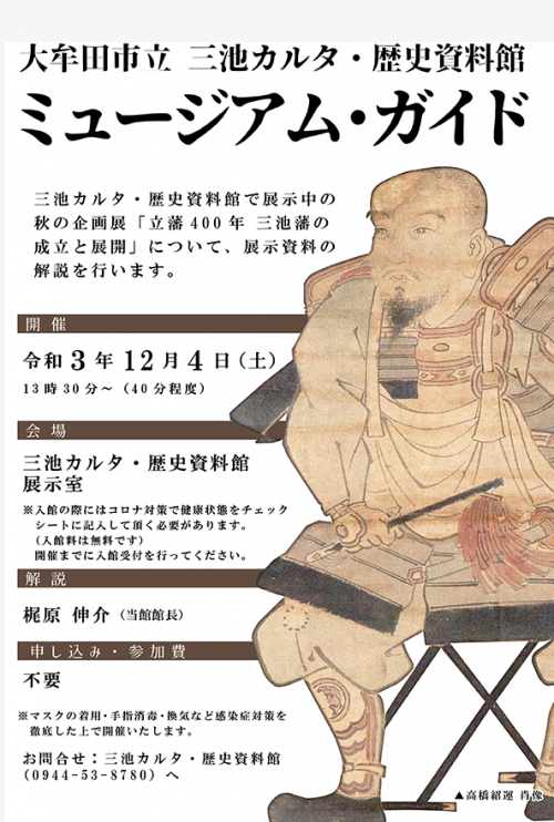 三池カルタ・歴史資料館で展示中の秋の企画展「立藩400年 三池藩の成立と展開」について、展示資料の解説を行います。