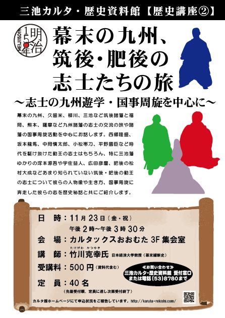 歴史講座②『幕末の九州、筑後・肥後の志士たちの旅~志士の九州遊学・国事周旋を中心に~』<終了しました>